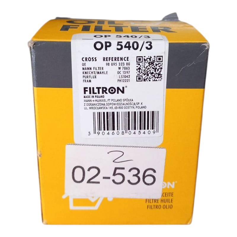 Filtro Olio Motore Marca Filtron Codice Filtro. OP 540/3