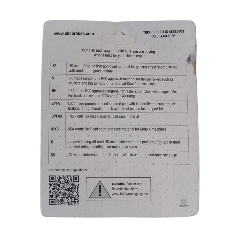 • Compatibilità Universale: Adatte a una vasta gamma di modelli di moto, le pastiglie EBC sono progettate per soddisfare le esigenze di tutti i motociclisti, sia per uso stradale che per performance in pista.